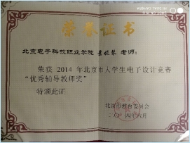 在今后的几年,继续精进教学技能,多次带领学生参加比赛。在2012年参加学院的青年教师基本功比赛荣获最受学生欢迎奖,2014年荣获北京市大学生设计竞赛“优秀辅导教师奖”,荣获2013-2014优秀教师,2015年在“如何上好第一次课”说课比赛中荣获二等奖。2016年指导学生完成“基于MSP430单片机的便携式电磁检测辐射仪”项目,参加全国挑战杯创新创业大赛荣获二等奖。