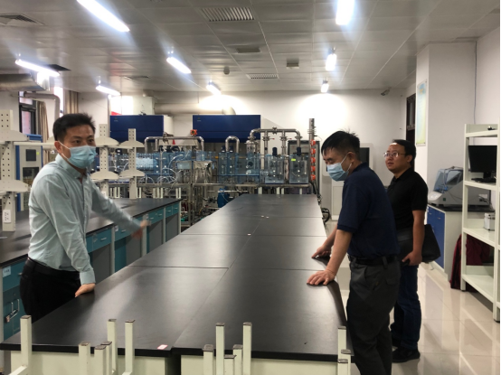 学校党政办公室主任张晓辉、生物工程学院副院长陈亮陪同何家振一行实地参观了生物工程学院,详细介绍了生物工程学院的特色工作、校企合作、大赛培训及实训室设置等情况。