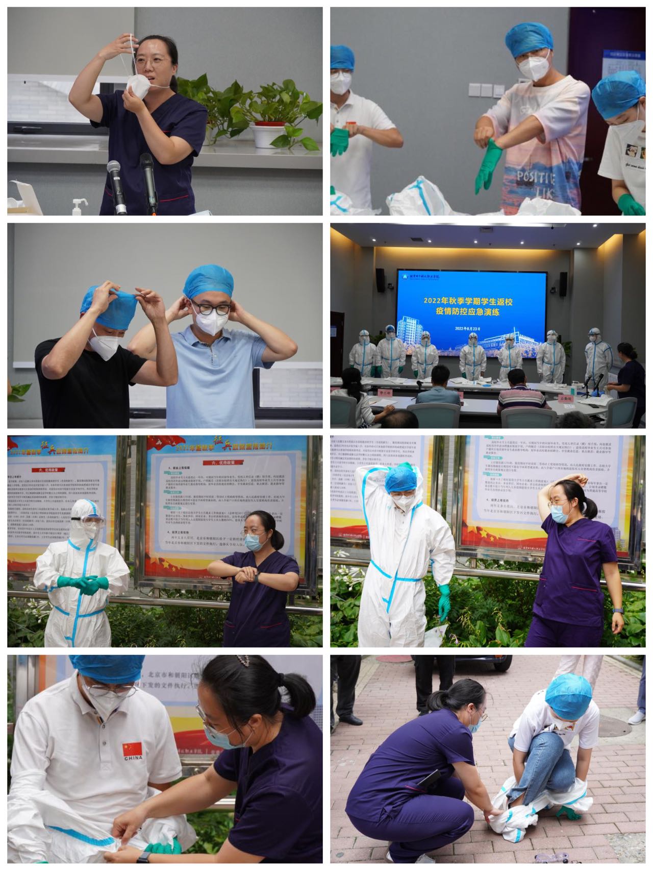 演练前,医务室医生还对全体学工干部开展了正确穿脱防护服操作培训。