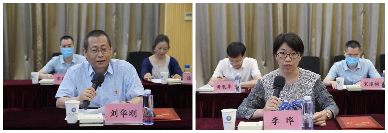 刘华刚教授和李晔教授分别代表新任委员和上届留任委员发言。刘华刚教授表示作为学术委员新兵,要认真学习《学术委员会章程》,尽快熟悉业务和要求,认真履行职责,带头恪守学术诚信,深耕自己的研究领域,切实提高履职素质和能力,全身心融入学校教育事业。作为上届学术委员,李晔教授分享了四年当中参与的多项学术委员会工作,以及在工作中凝练出的对学术委员工作的认识和对如何做好一名学术委员的思考。展望新一届学术委员会的工作,李晔教授充满了信心和期待。