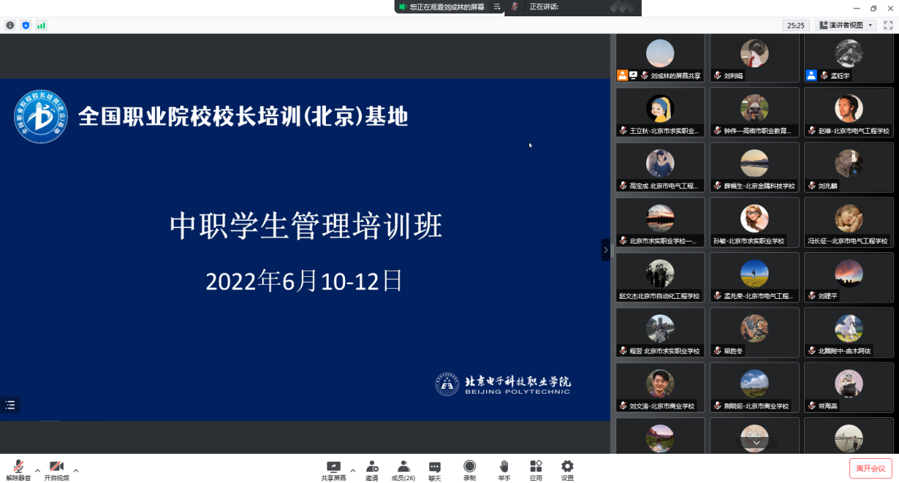 2022年6月10至12日,由北京电子科技职业学院举办的全国职业院校校长培训(北京)基地(以下简称“基地”)第二期中职学生管理培训班顺利完成线上培训任务。来自全国职业院校的中职主管学生工作副校长、德育教育负责人、团委书记、系部负责人和专任教师等135人参加了线上培训。