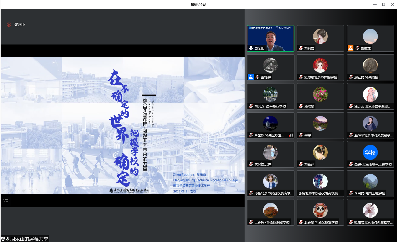 2022年5月20至22日,由北京电子科技职业学院牵头的全国职业院校校长培训(北京)基地(以下简称“基地”)第一期中职教学管理能力培训班顺利完成线上培训任务。来自北京以及全国职业院校的中职主管教学副校长、教务处长、系部主任等128人参加了线上培训。