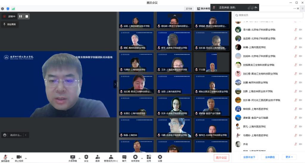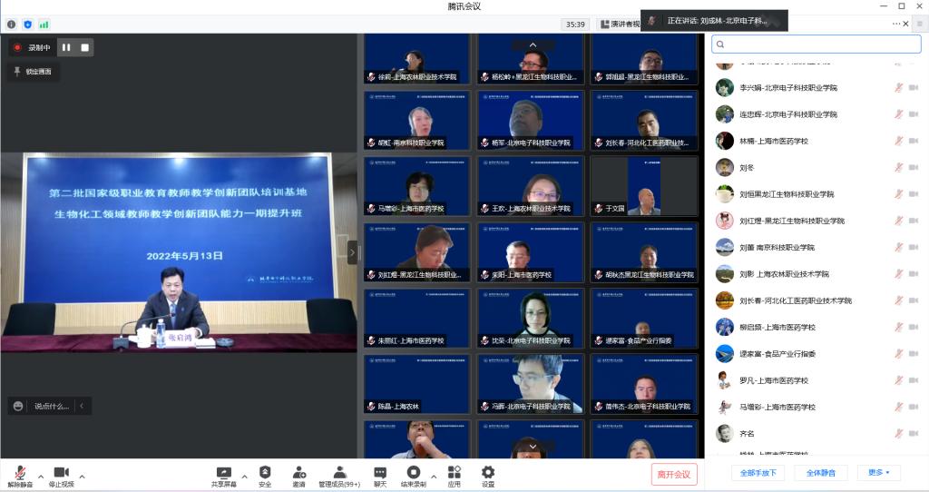 5月13至14日,由北京电子科技职业学院牵头的第二批国家级职业教育教师教学创新团队生物化工共同体成立大会暨生物化工领域教师教学创新团队能力一期提升班顺利召开。来自北京电子科技职业学院、上海市医药学校、上海农林职业技术学院、河北化工医药职业技术学院、黑龙江生物科技职业学院、南京科技职业学院等6所院校,华北制药金坦公司等19家企业近150人参加线上会议。