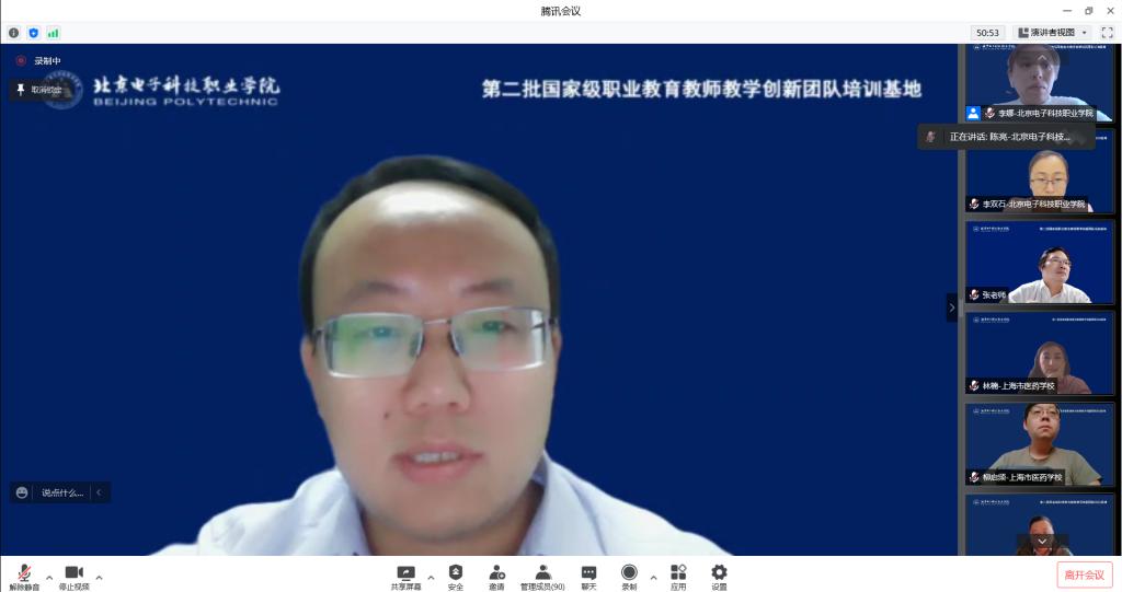 北京电子科技职业学院生物工程学院副院长陈亮主持参训单位团队建设经验分享会。自北京电子科技职业学院、上海市医药学校、上海农林职业技术学院、河北化工医药职业技术学院、黑龙江生物科技职业学院、南京科技职业学院等6所院校团队建设负责人作经验交流,以培促融、以培促建、以培促研,共同推动共同体各成员单位间的融合,推动创新团队的高水平建设,促进课题研究的高质量完成。