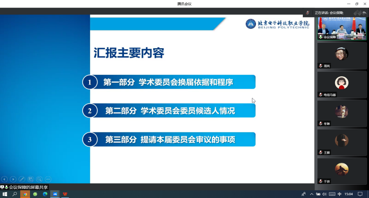 会议首先由科技处处长冯志新从新一届学术委员会换届依据和程序、学术委员会候选人推荐情况、提请本届学术委员会审议的事项等几方面对学术委员会换届工作做了汇报和说明,提出了请会议审议的新一届学术委员会委员候选人名单、学术委员会主任、副主任、秘书长候选人人选。随后,第二届学术委员会全体委员审议、表决产生了第三届学术委员会委员候选人名单,推选姚光业担任第三届学术委员会主任候选人,辛秀兰和朱运利担任学术委员会副主任候选人,冯志新担任学术委员会秘书长候选人。第三届学校学术委员会组成人员及主任、副主任、秘书长人选将最终提交学校党委常委会进行审定通过。