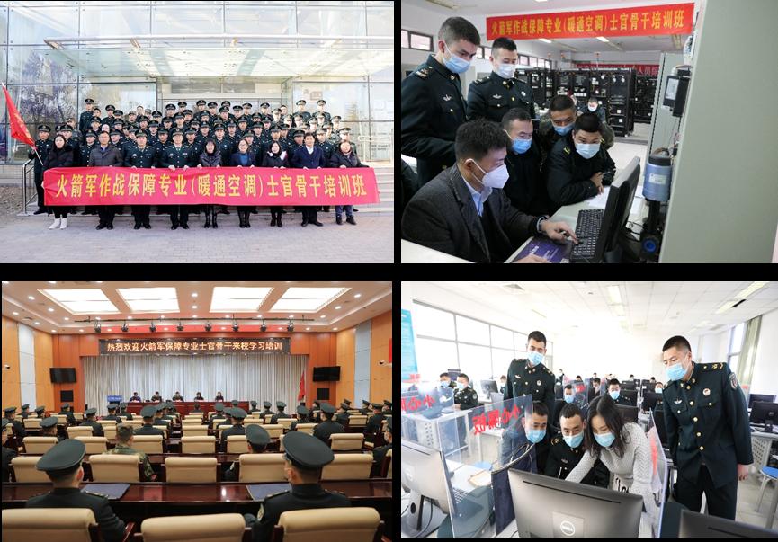 军地共育人才,服务军民融合发展。为深入学习贯彻落实习近平新时代中国特色社会主义思想特别是习近平强军思想,充分发挥学校全国“双高”的优质教学资源,提升军人职业素质与技能,学校采取“菜单式”定制培养模式,开展了对现退役军人培训项目。组织火箭军作战保障专业(通风空调)士官骨干培训班,根据火箭军要求量身定培,围绕实战搞教学,开展了为期4周的火箭军作战保障专业(通风空调)士官骨干培训,培训主要包括电气控制及钳工焊工、除湿与制冷、通风与空调、暖通系统监控与运行管理等模块,全方位提高火箭军作战保障专业现役士官的保障能力。克服新冠疫情影响,围绕《有效沟通》和《应用文写作》两个专题,开展了2期退役军人云端培训,助力退役士兵提高职业素养和就业创业能力。