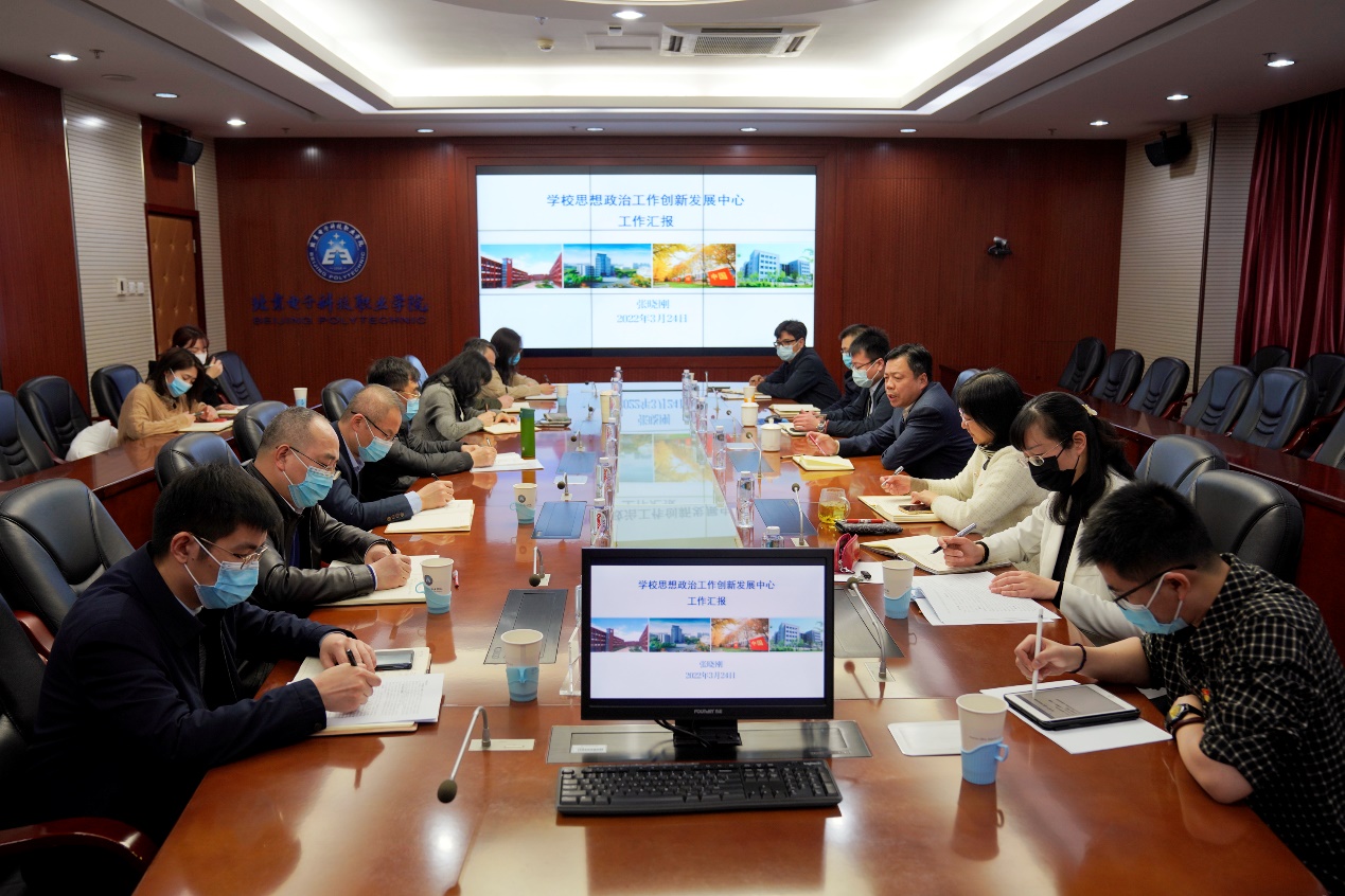 3月24日下午,学校思想政治工作创新发展中心召开第一次工作研讨会,对思创中心机构设置方案、经费管理办法以及2022年重点建设任务进行研讨。学校党委书记张启鸿出席并主持会议,党委副书记王玮,党委常委、宣传部部长张晓刚出席会议。党委组织部、党委宣传部、学生工作部、教务处、科技处、团委、马克思主义学院等负责人以及部分教师代表参加了研讨会。