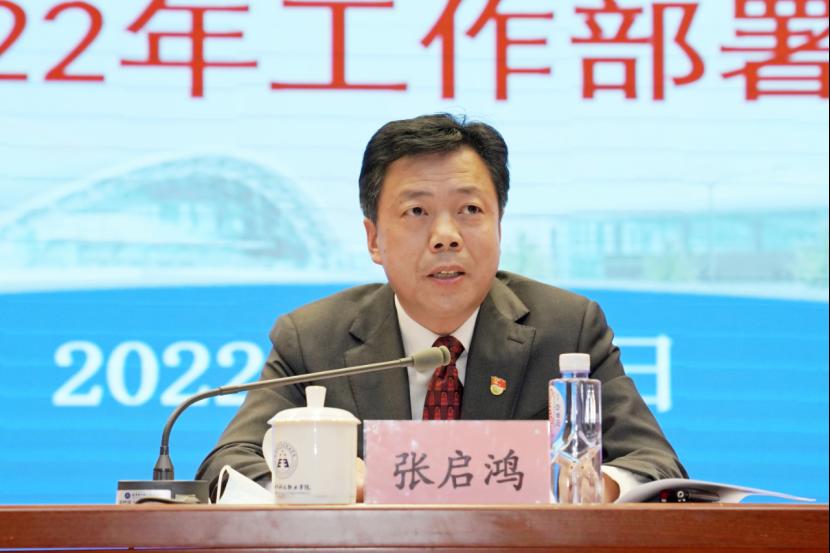 张启鸿传达了教育部关于今年职业教育工作的要求以及北京市委教育工委关于做好今年高校工作的要求,强调要深入学习、对标对表上级部署要求,展现新时代的新担当新作为。他深刻分析了学校面临的发展机遇,“双高”建设进入冲刺阶段,升本任务“箭在弦上”,全校上下要珍惜荣誉,再接再厉,进一步增强闻鸡起舞的使命感,坚定发展高层次、高质量职业教育的信心和决心;要直面挑战,正视问题,进一步增强机不可失的危机感,树立改革意识,拿出改革勇气,以解决实际问题推进学校事业不断向前发展;要突出重点,狠抓落实,进一步增强时不我待的紧迫感,始终以高质量党建引领事业发展,凝聚事业发展的思想共识,全力以赴“建高升本”,持之以恒严抓教风学风,进一步推进内部管理体制改革,加强学生教育管理,加强校园文化建设,千方百计确保校园安全稳定;要进一步增强只争朝夕的责任感,加强学习,严格自律,主动作为。他强调,2022年学校面临的改革发展任务非常繁重,我们要同心同德、群策群力,以虎虎生威的雄风、生龙活虎的干劲、气吞万里如虎的精神,共同书写北电科职业教育事业发展的辉煌篇章,以更加优异的成绩迎接党的二十大胜利召开。