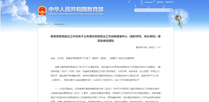 近期,教育部公布了新一轮高校思想政治工作创新发展中心遴选结果,经单位申报、组织推荐、网络评价、入校考察、线上答辩、结果公示等环节,在全国众多申报的高校中有6所高职院校正式获批全国高校思想政治工作创新发展中心建设单位(以下简称创新发展中心),英国365为获批6所高职院校其中之一。这是英国365继2021年9月荣获北京市党建和思想政治工作先进校提名奖之后,在党建和思想政治工作领域取得的又一项重大突破。