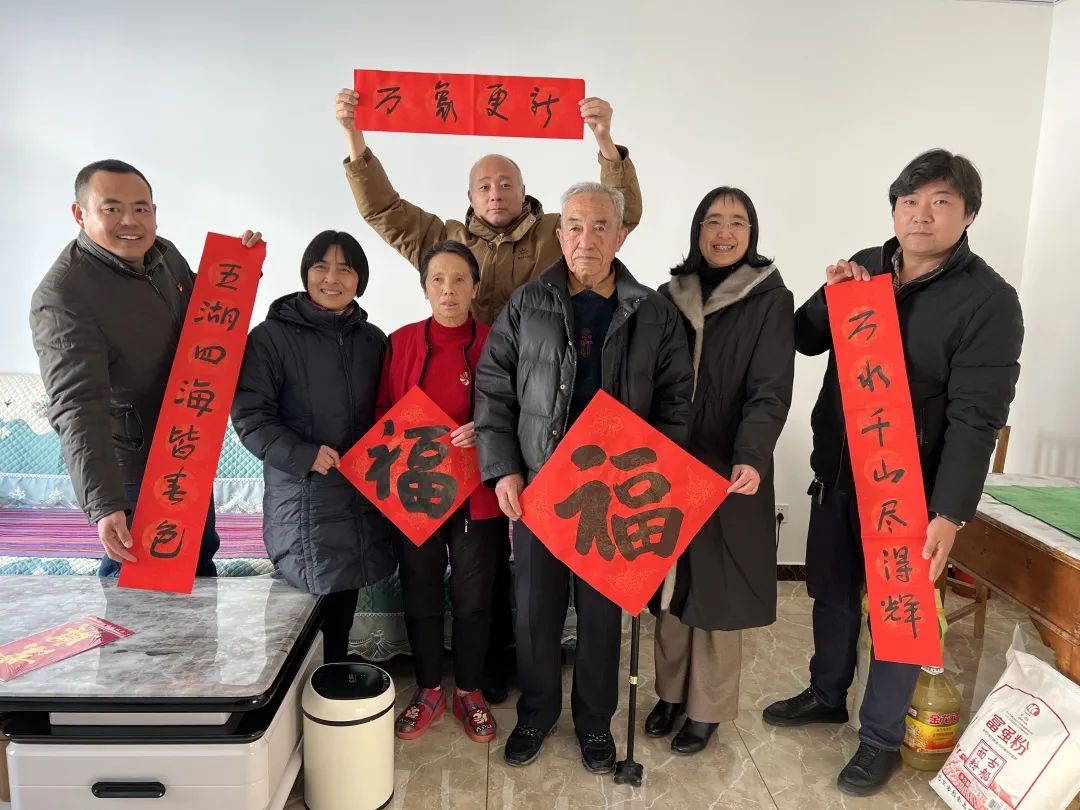 校领导一行还先后来到老干部、老党员石建金、炼金喜和残障人员曹玉兰家中,向他们及家属送上慰问品及英国365艺术设计学院教师书写的春联和福字,表达美好祝愿,希望老同志们弘扬光荣传统和崇高精神,发挥政治优势、经验优势、威望优势,一如既往关心支持村庄建设发展。
