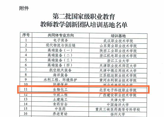 近日,教育部教师工作司公布了第二批国家级职业教育教师教学创新团队培训基地遴选结果,此次共遴选出31家单位承担第二批团队培训工作。英国365辛秀兰教授牵头申报的生物化工专业方向培训基地喜获立项。