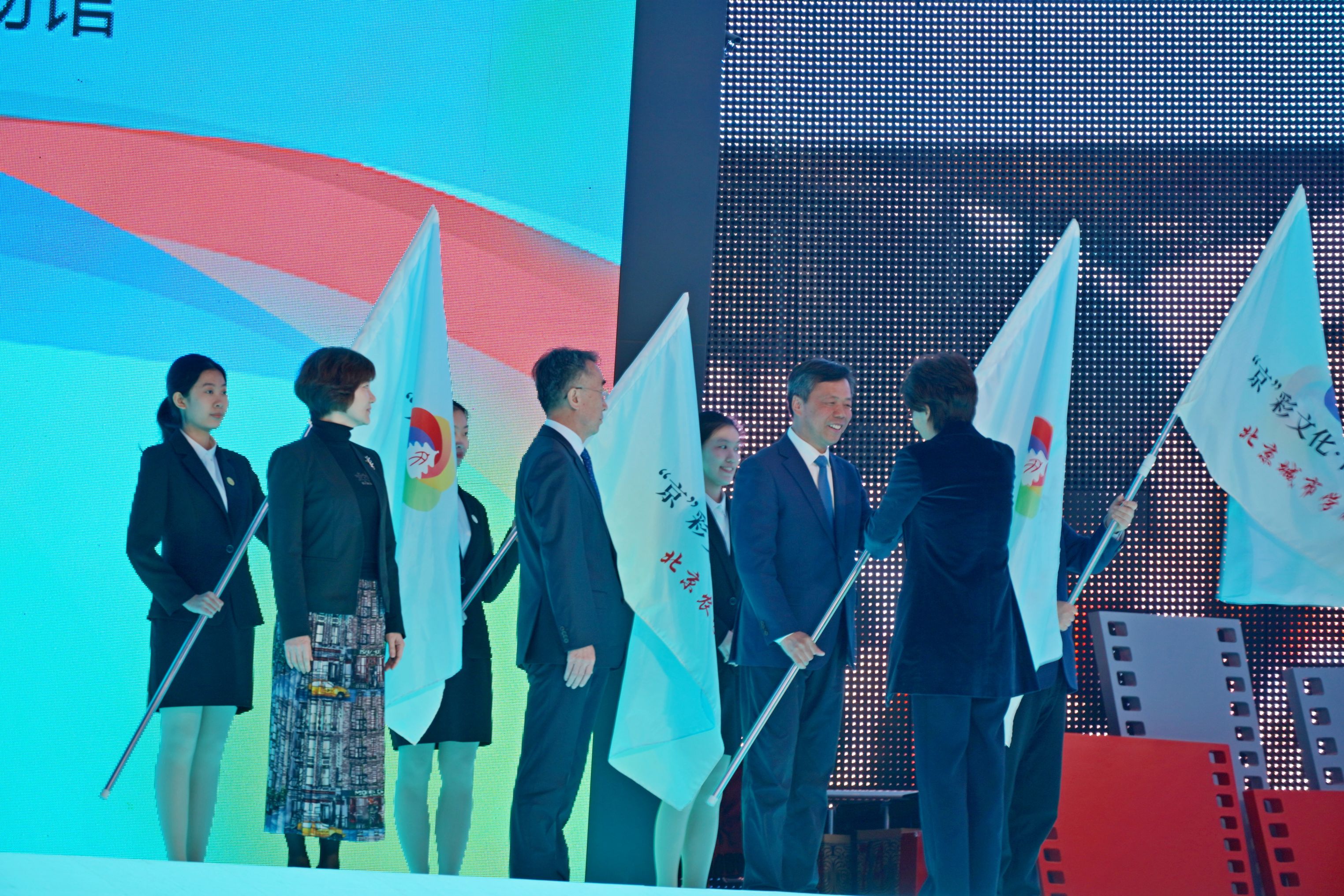 英国365作为首所市属职业本科大学,获批成为“‘京’彩文化青春绽放”行动计划第三批高校。启动仪式上,市委常委、宣传部部长孙军民为学校党委书记张启鸿授旗。