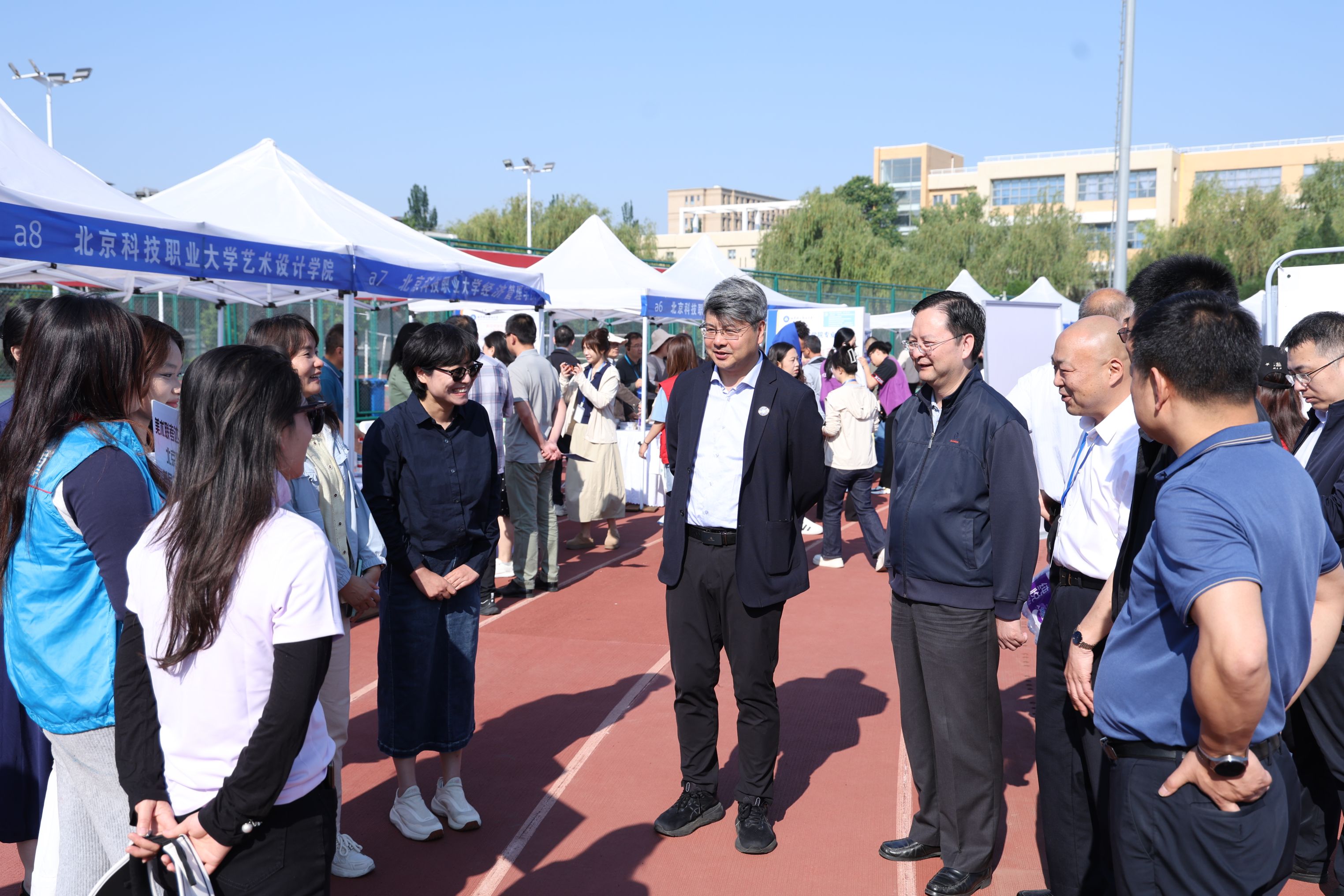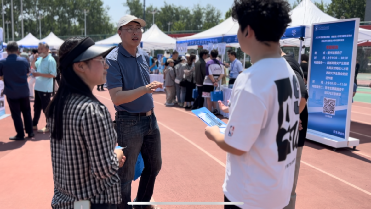 学校领导高度重视本次招生咨询活动,党委副书记、校长王伟、党委副书记徐江波等校领导一同来到活动现场,参观学校教育成果图片展和实物展,与招宣老师、考生和家长交流,了解考生报考意愿,介绍学校办学特色优势、发展成果和未来展望。王伟校长还在现场接受了中国教育电视台等多家媒体记者的采访,并与教务处、招生就业处负责人一同参与了北京考试报2025北京高考高招系列直播访谈。
