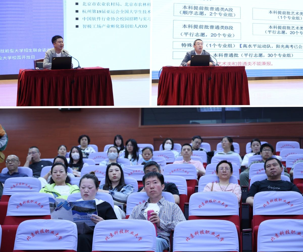 活动当天,学校精心准备的两场专题报告也备受关注,其中一场特邀产业运营专家赵凯,以“首都高精尖产业发展布局及对高校人才培养和大学生就业的促进作用”为主题,从主动了解和适应首都高精尖产业发展角度,指导考生和家长正确制定生涯规划,选择适合未来发展的专业方向。另一场是大兴区考试中心高招办主任崔雪老师带来《高考志愿填报若干技巧与注意事项》专题报告,结合多年的工作经验,崔雪主任详细讲解了高考志愿填报的策略和方法,提醒考生和家长在填报志愿时需要注意的细节,助力考生科学合理填报志愿。