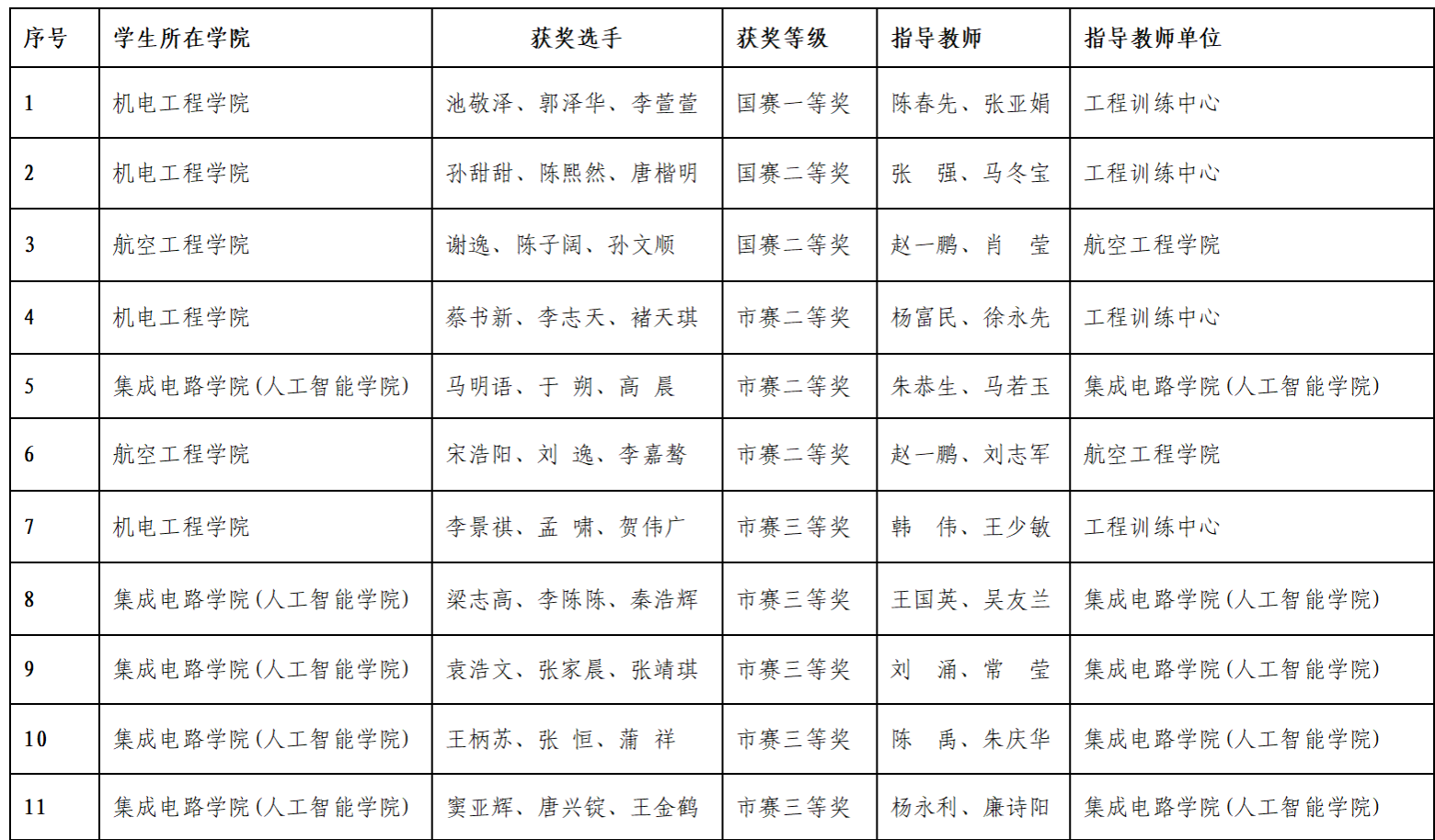 本次英国365获奖团队覆盖机电工程学院、航空工程学院和集成电路学院(人工智能学院)三个学院,指导教师则来自工程训练中心、航空工程学院与集成电路学院(人工智能学院),不同单位导师发挥专业优势、互帮互助,为团队夺冠奠定坚实基础,具体获奖情况如下: