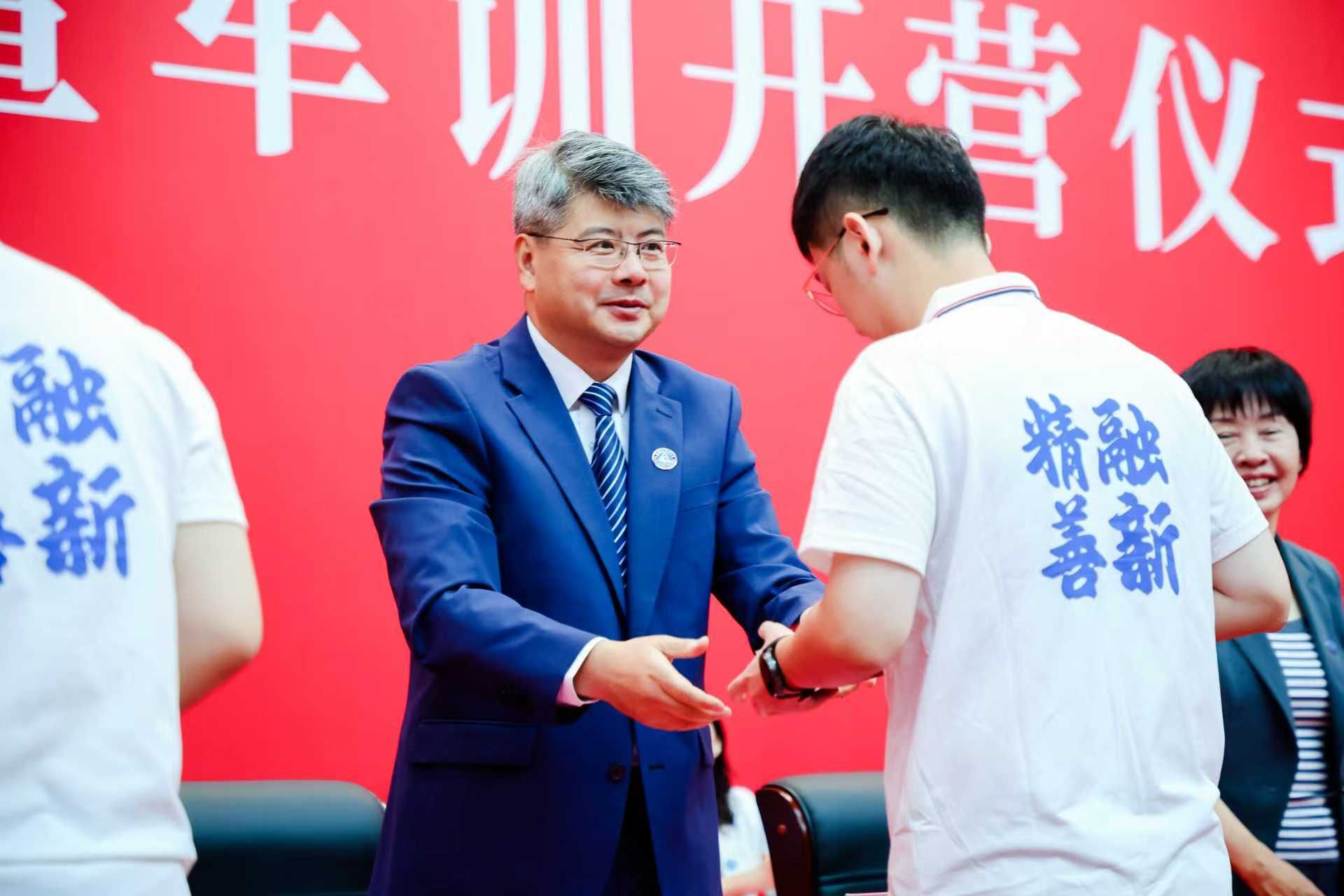 军训教官王进作为教官代表发言,鼓励大家要以军人的标准严格要求自己,以团结的精神凝聚集体力量,以敬畏的态度遵守纪律规则,上好从“我”到“我们”的青春必修课。