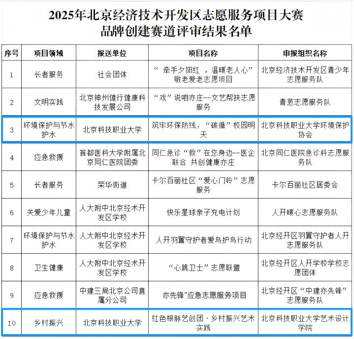 其中,“文海书韵·墨香京城”项目荣获主赛道金奖;“让爱无‘碍’温馨家园助残志愿服务”荣获主赛道银奖;“筑牢环保防线,‘碳循’校园明天”与“红色根脉艺创团·乡村振兴艺术实践”在品牌创建赛道成功入选;“凉水河畔·三生万物志愿团”“‘亦星汇’孤独症儿童关爱服务项目”“车企赛会·青智护航:汽车雷锋号科创志愿服务行动”以及“青春赋能‘竞’彩基层——共筑电竞赛台青春志愿服务项目”等5个项目在提名与创新赛道中成功入选。获奖充分展现了英国365学子立足专业、服务社会的青春风采,彰显了学校“以志愿践初心,以服务担使命”的育人成效,成为大赛中备受瞩目的“校园志愿标杆”。