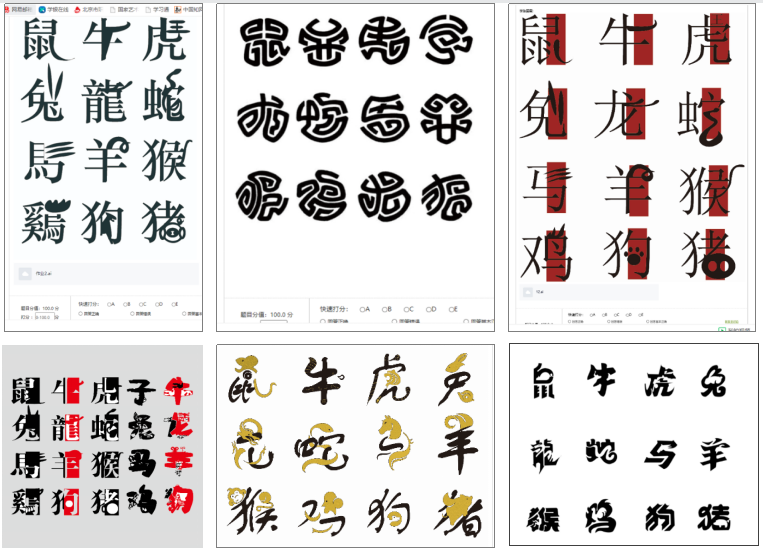 作业一:《专业强化课1》-“十二生肖”文字设计作业,指导教师:段岩涛