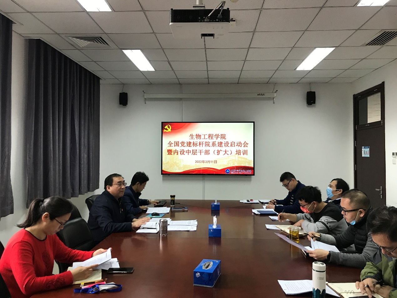 3月11日,生物工程学院召开全国党建工作标杆院系建设启动会暨内设中层干部(扩大)培训。学院领导班子、总支委员、各部门负责人、各党支部书记、支委参加培训。