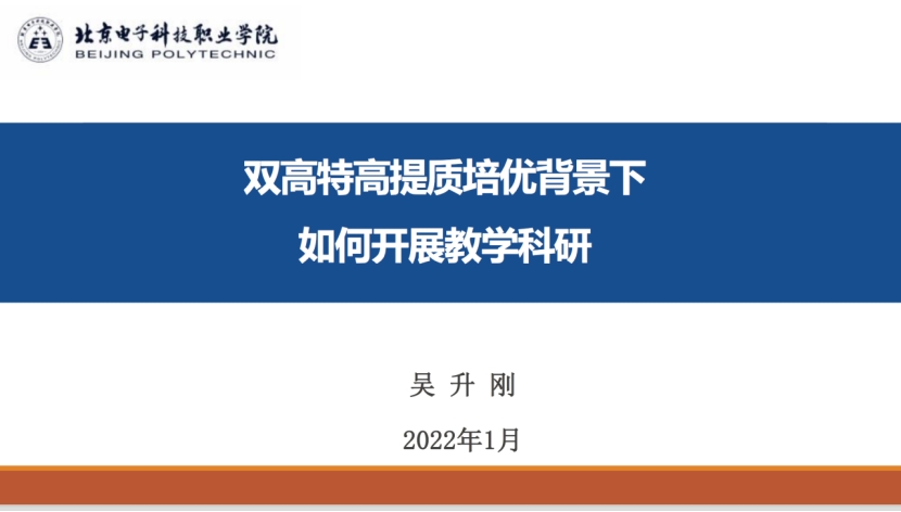 北京电子科技职业学院质量办主任吴升刚教授从理解教学科研重要意义、问题导向选择研究方向、开展教学科研课题研究和应用推广培育教学成果四个方面对“双高特高提质培优背景下如何开展科研”进行了交流与分享。首先,他指出教学科研的重要意义在于它是推动教学改革的先决条件、是提升教学水平的重要途径、是提高教学质量的关键因素、是形成专业特色的重要手段、是培育教学成果的重要基础。广大教师必须提高认识、重视教学科研。对于科研问题的选择,应该结合本校、本专业、本课程教育教学实际,以问题为导向选择研究方向。教师要关注政策,把准职业教育的改革方向。吴主任通过总结自己长期工作中进行教学科研的七个实例,全方位地向我们展示了如何结合具体工作实际,发现问题、解决问题,从而进行教学改革并最终获得教学成果。同时,他也指出在未来教学改革中,我们可以围绕“厚基础+大平台人才培养方案”,“1+X证书制度试点”、“课程建设横向分类,纵向分级”、“开发机电类专业新工程师能力模型、标准、认证项目”等方面进行研究,为老师们进行教学科研提供了新思路。