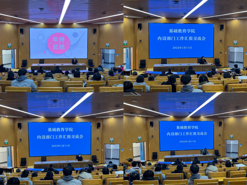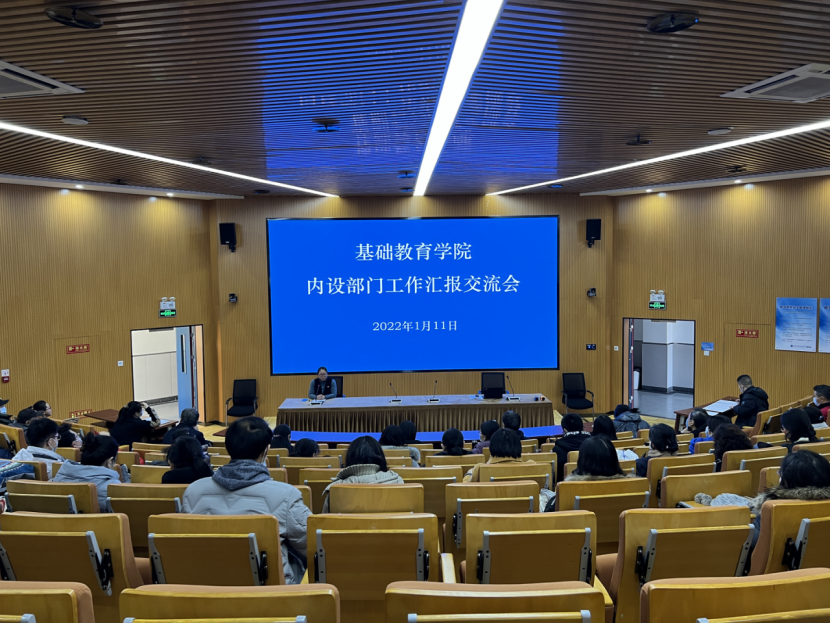会议首先由学院四个教学部的主任和三个内设部门负责人对2021年度的部门工作进行总结汇报。大家列举工作成绩、总结工作经验、反思工作问题,并提出2022年的工作设想。全体教职工在了解全院各部门工作情况的同时,增加相互理解和体谅,达到凝聚人心、汇聚力量、相互支持、并肩前行的目的。
