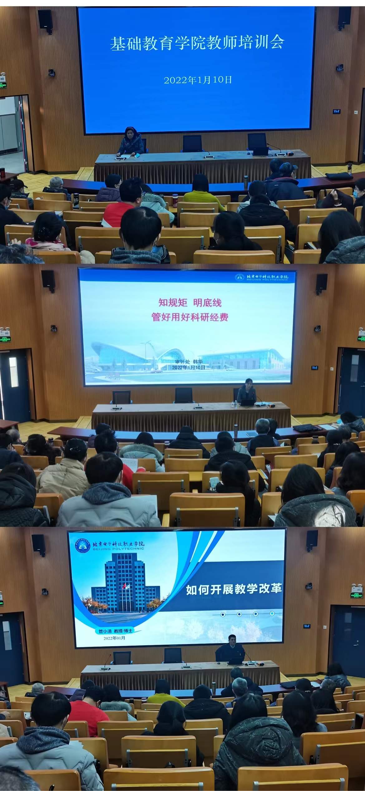 2022年1月10日,基础教育学院组织全体教师开展专题培训。会议邀请教务处处长管小清和审计处处长韩华到会作专题培训,基础教育学院院长王冬琳主持。