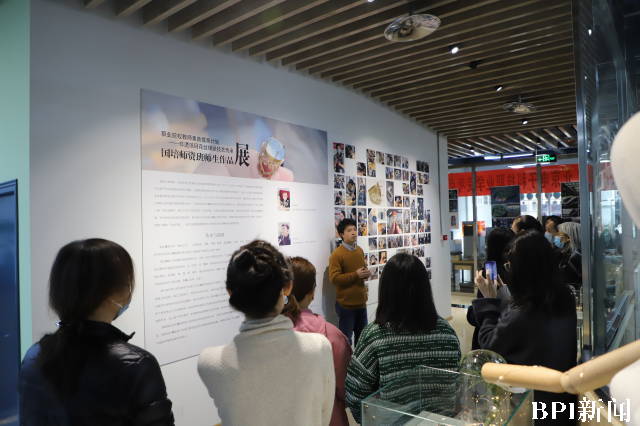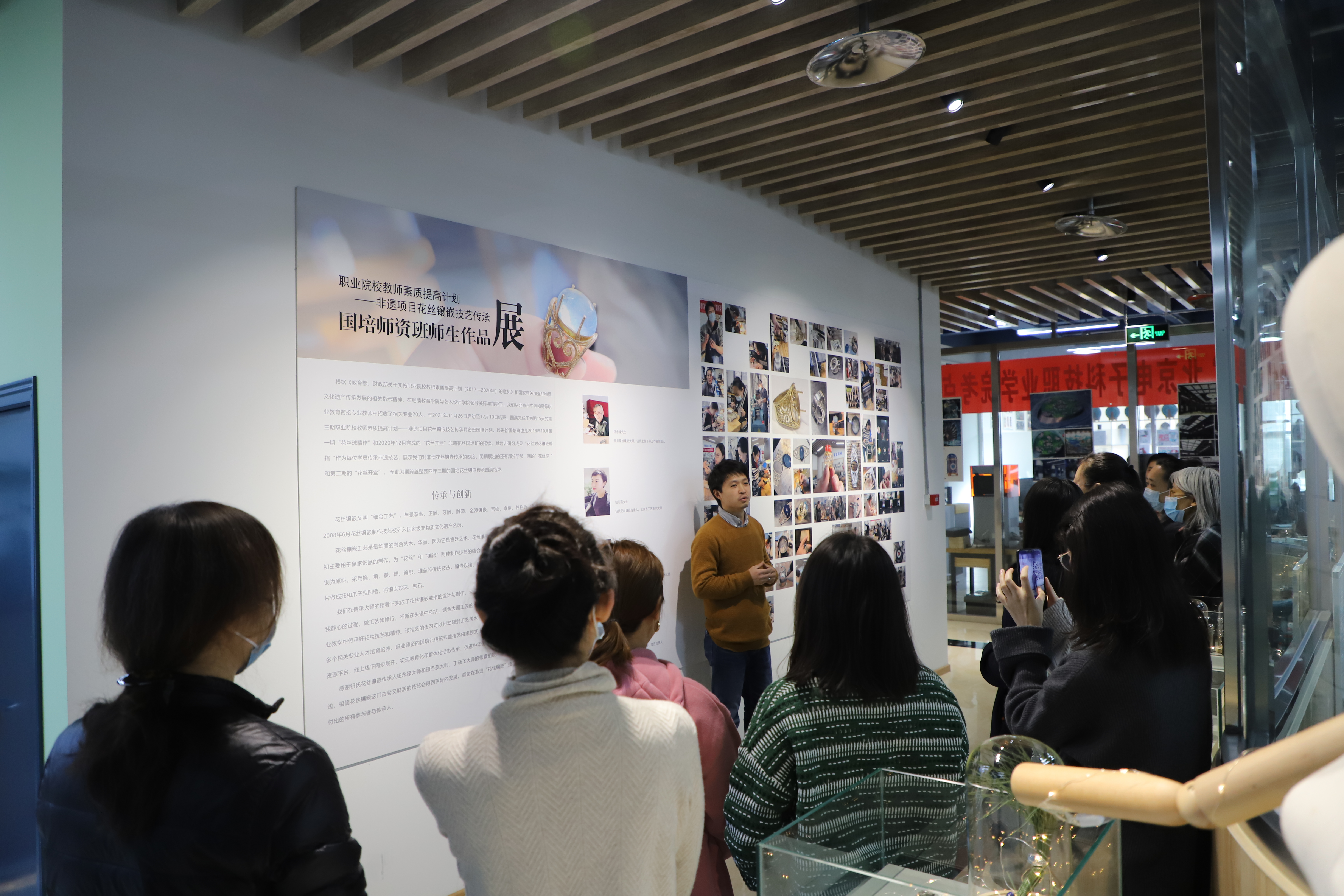 11月26日——12月10日,艺术设计学院圆满完成了第三期职业院校教师素质提高计划——非遗项目花丝镶嵌技艺传承师资班国培计划。本次国培班邀请到了北京市工艺美术大师、中国非物质文化遗产北京花丝镶嵌代表性传承人钮冬蕊大师进行培训,国培学员们在大师的指导下完成了花丝镶嵌戒指的设计与制作。展览中,精美繁复的花丝镶嵌作品令人目不暇接,花丝衍生珐琅结合作品将花丝镶嵌技艺与珐琅彩完美交织结合,相辅相成,展现了学员们精细的技艺手法和独特的艺术创意。