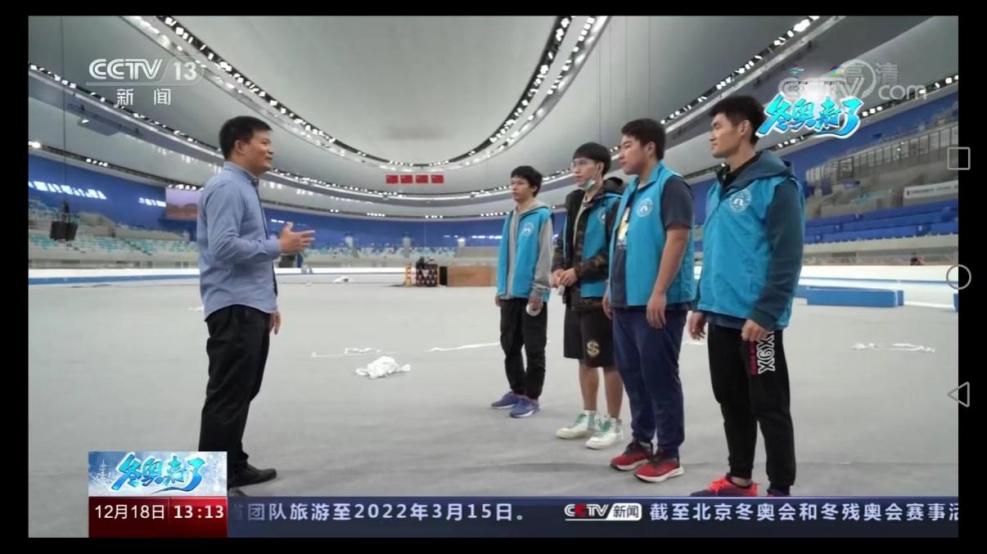 央视报道林梦圆老师在国家速滑馆指导学生实习