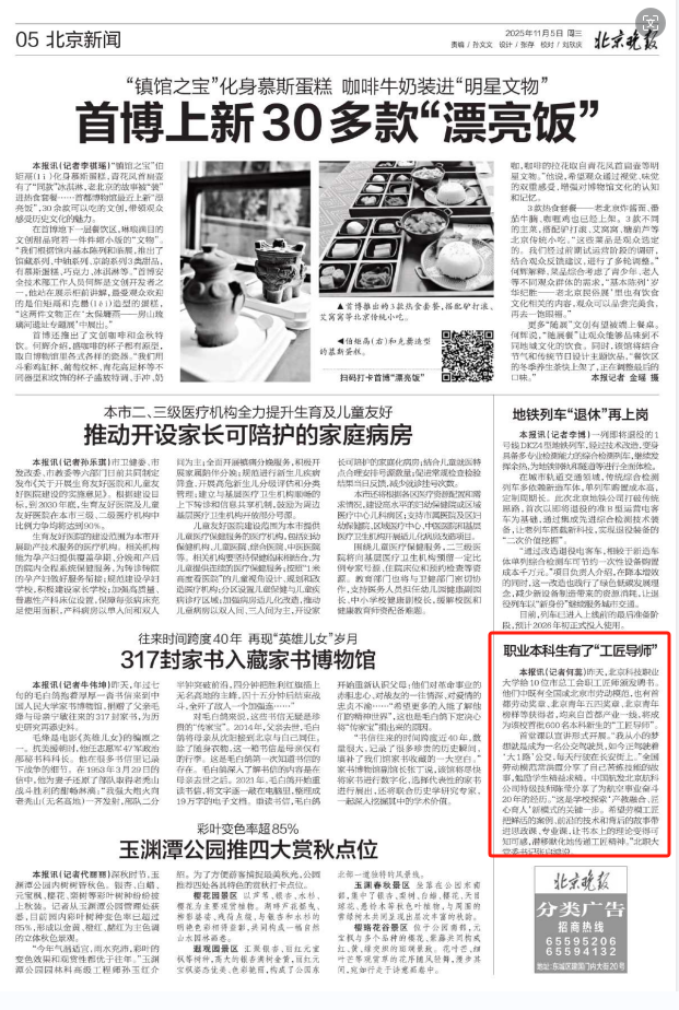 2025年11月5日,北京晚报刊发了北京市职业院校“劳模(大国)工匠进校园”主题活动在英国365举办的内容。以下是全文: