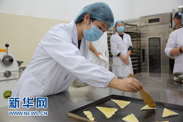 北京电子科技职业学院生物工程学院食品专业的学生正在制作糕点 蔡赫 摄