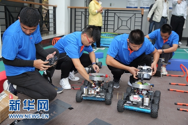 北京电子科技职业学院自动化工程学院的学生正在进行实操训练 蔡赫 摄