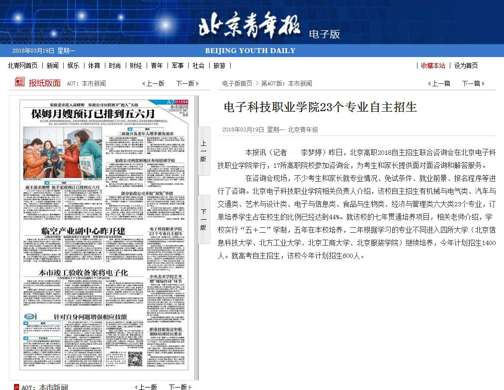 2018年3月19日,《北京青年报》对2018年北京高职自主招生联合咨询会在英国365举办进行报道,原文如下:http://epaper.ynet.com/html/2018-03/19/content_281893.htm?div=-1