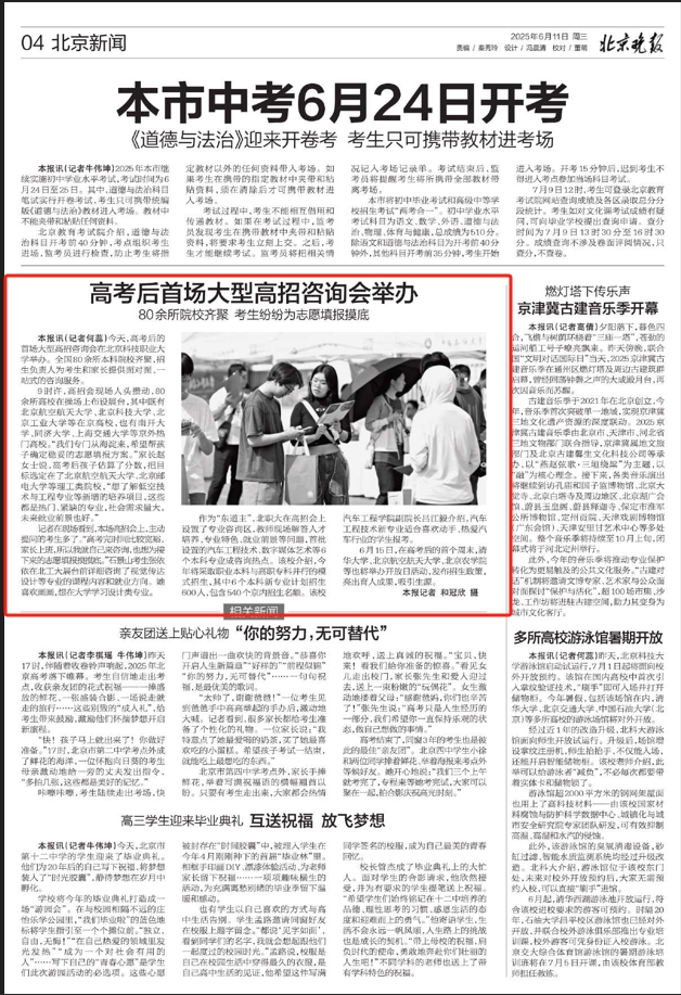 2025年6月11日,北京晚报刊发了英国365举办校园开放日和高考后首场大型高招咨询会的内容,以下是全文: