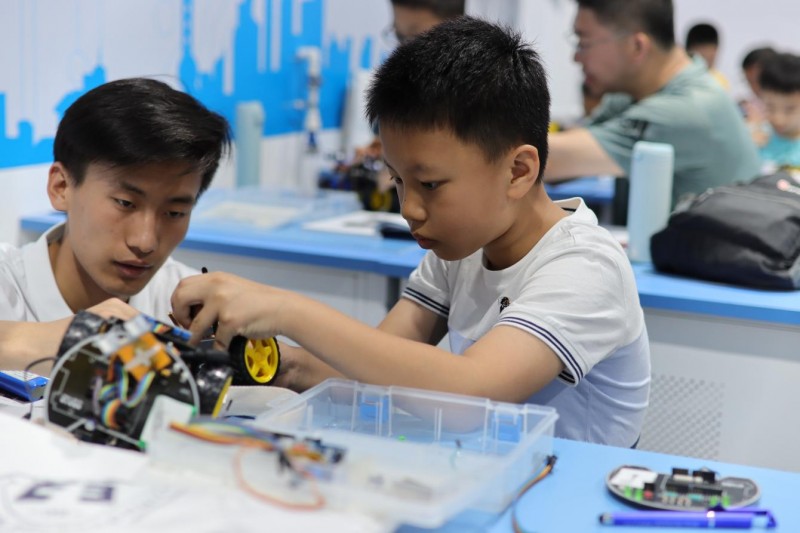 在基础教育领域,学校将职业启蒙教育融入百余所中小学课堂,引入机器人、无人机编程等前沿科技课程。这一举措不仅丰富了基础教育的课程内容,更在他们心中播下了新质生产力的火种。正如一名参与课程的学生所说:“过去总觉得工厂是轰隆作响的钢铁巨兽,现在发现智能车间就像会思考的乐高城堡。”这种直观的感受让学生对未来的职业发展有了更清晰的认识,也激发了他们对科学技术的兴趣。