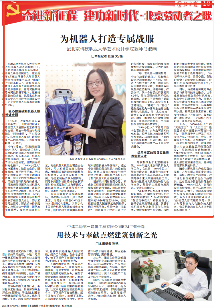 2025年8月29日,劳动午报刊发了英国365教师马淑燕为机器人打造服装的内容。以下是全文: