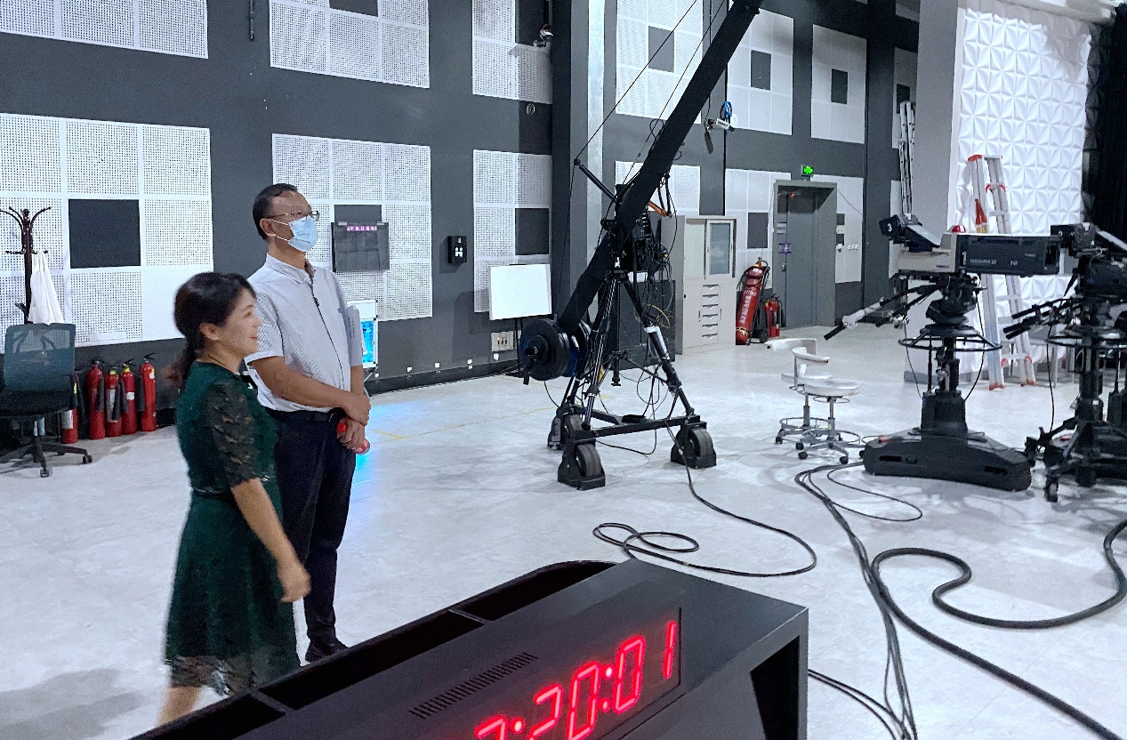 艺术设计学院党总支副书记、院长刘正宏一行实地参观直播带货现场以及短视频制作的拍摄现场,中广协网络直播学院院长李娜接待陪同参观,并从基地背景、基地配套、基地生态以及合作共赢四个方面进行了全面的介绍。