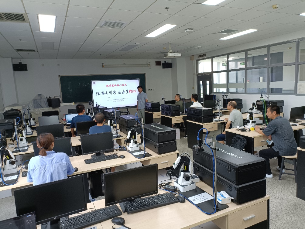 来自深圳物新智能科技有限公司工程师对机器视觉进行现场教学。通过知识讲解、现场操作,培训了机器视觉的模式识别、视觉定位、尺寸测量和外观检测四大类功能,参加培训的老师也积极动手练习,基本具备了机器视觉系统的安装、调试、编程和维护等能力。