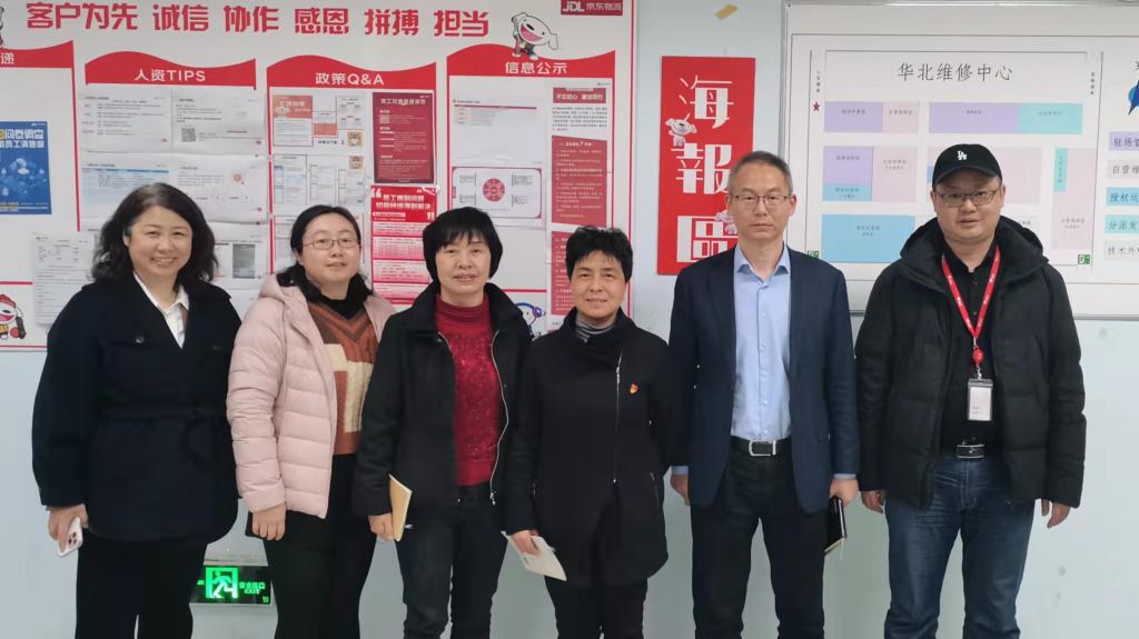 为进一步深化产教融合,拓宽学校校企合作领域,提升服务区域经济社会能力。4月1日,学校纪委书记胡庆平、副院长辛秀兰、科技处处长冯志新等一行4人,到位于经开区的京东集团华北服务公司开展调研。京东集团华北服务公司高级经理赵洪波、京东集团华北服务业务拓展经理王示威、京东集团华北服务场外门店经理骆名样热情地带领我院领导参观了售后仓和3C维修中心。