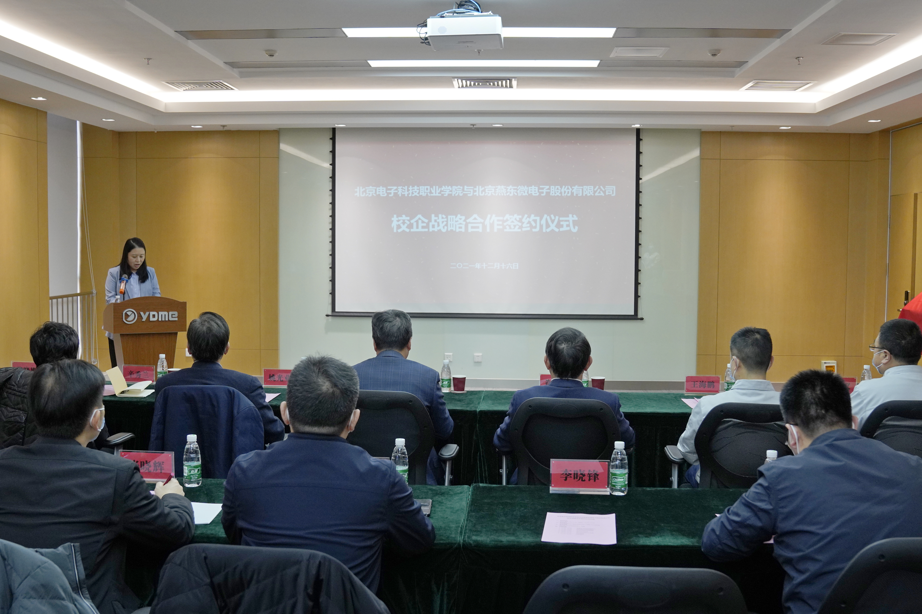 12月16日,北京电子科技职业学院与北京燕东微电子股份有限公司(燕东微)隆重举行战略合作签约仪式。北京燕东微电子股份有限公司董事长谢小明、党委书记王海鹏,学校党委书记张启鸿、院长姚光业及领导班子成员等出席签约仪式。