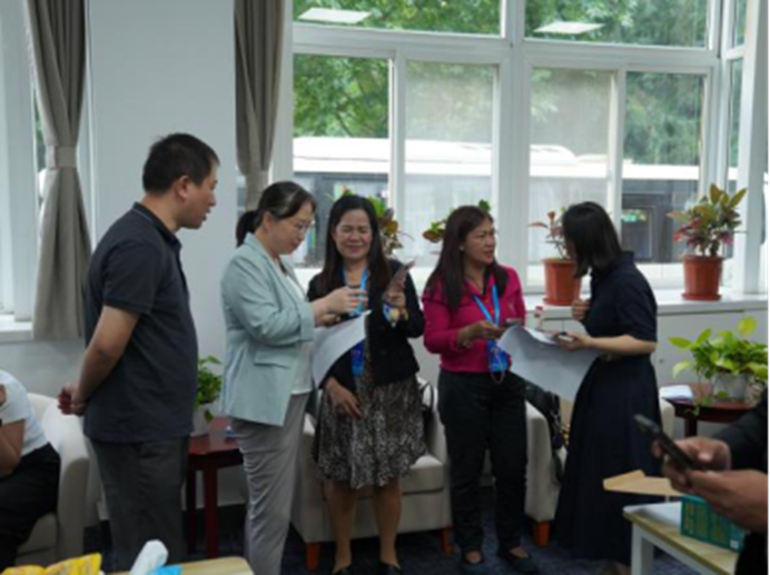 在欢迎仪式后的学校介绍环节中,陈江锋、北京市丰台区职业教育中心学校副书记李毓荣、印度尼西亚马迪恩国立理工学院的Lala Hucadinota Ainul Amri博士以及菲律宾微证书与行业培训中心副主任Virginia I. Berganio分别对各自院校的基本情况、国际化发展及合作需求进行了介绍交流。