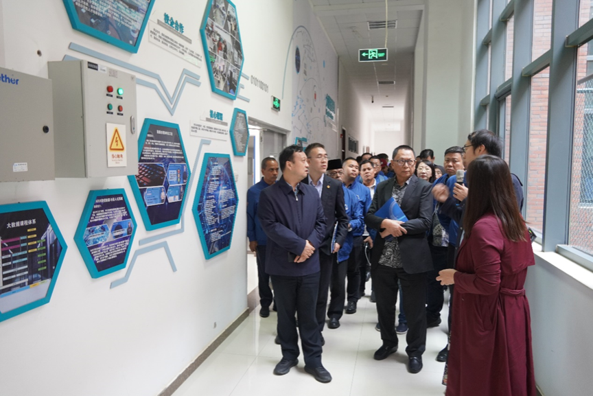 在人工智能学院,考察团参观了大数据实训基地和第四届“丝路工匠”国际技能大赛出国参赛团队的训练现场。考察团对学校注重学生工匠精神的培养给予了高度评价。