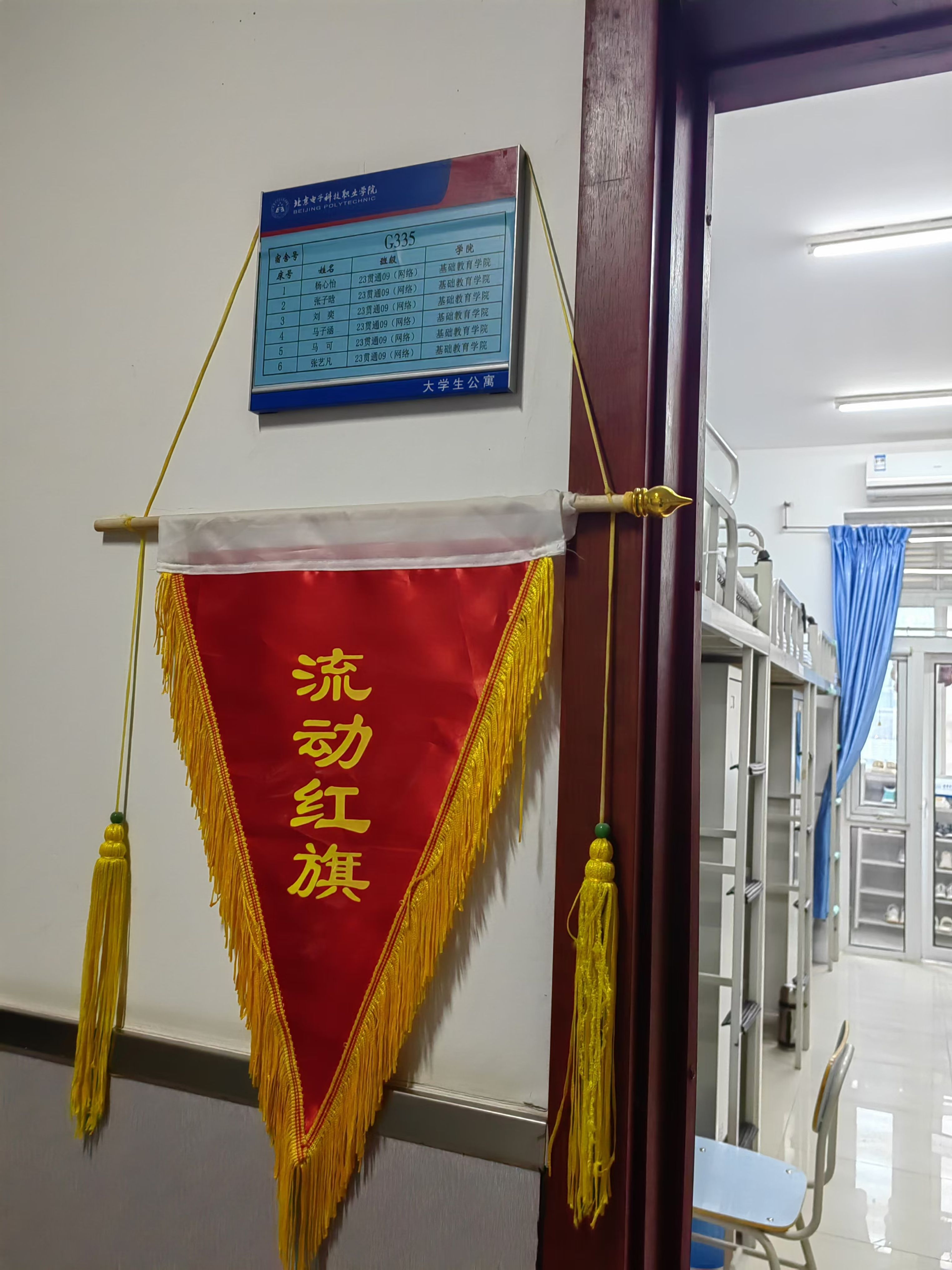 23贯通09(网络技术)G335宿舍共6名成员,宿舍氛围和谐向上。他们在思想上积极上进,3人为共青团员,1人为入团积极分子,6人均担任班干部,是学院团学骨干。学习上成绩优异,4人在第一学年综合排名中位于年级前30名,并获中职政府奖学金;3人获校级奖学金,1人被评为校级“三好学生”。生活中表现出色,宿舍多次荣获“流动红旗”,值日满分率98%。宿舍成员积极参加各项活动,3人为学院志愿团队成员,1人获得2024年暑期社会实践活动校级二等奖,3人获得2024年基础教育学院“用英语讲中国故事”短视频大赛一等奖、三等奖和优秀奖等多项荣誉。