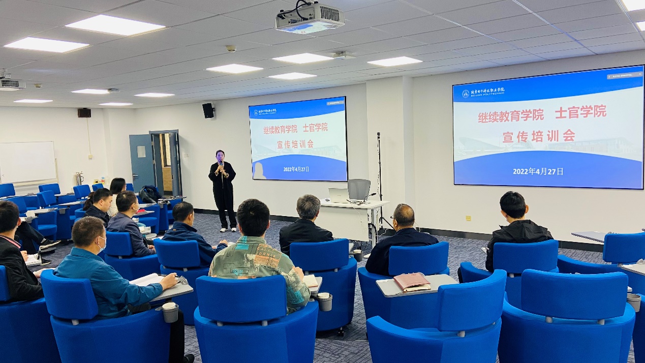 为加强干部队伍建设,提升全体党员、群众宣传工作能力水平和综合素质,2022年4月27日,继续教育学院党支部与士官学院党支部联合开展了红色1+1系列活动之宣传工作培训会,邀请北京教育头条总经理王刚通过云端做了《校园新闻策划与写作》专题讲座。继续教育学院和士官学院党员及教职工23人参加了培训。