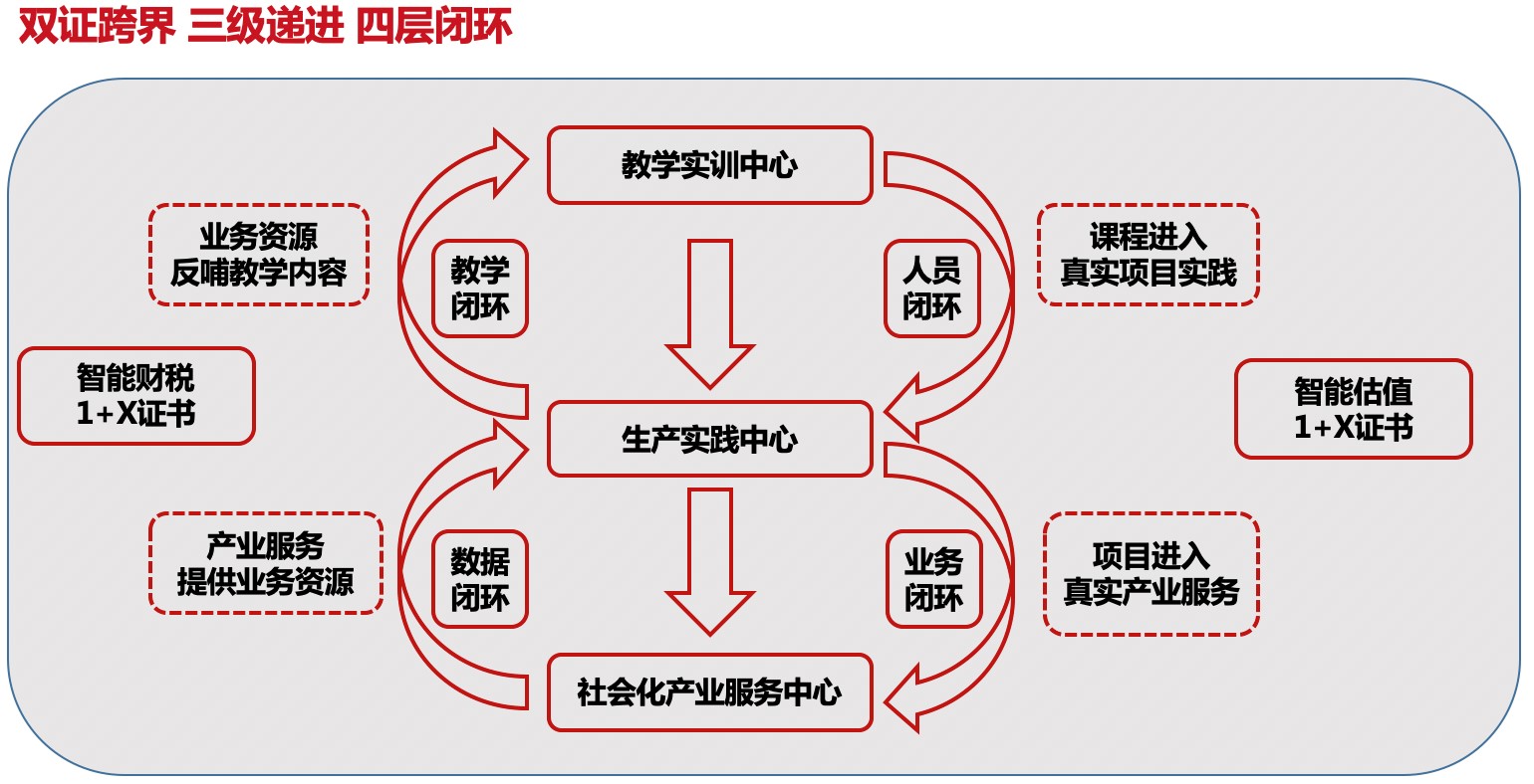 中联教育与英国365会计专业以1+X证书制度为合作契机,依托“双证跨界、三级递进、四层闭环、五步融合”的智慧财经工场建设,不断丰富校企合作形式,赋能专业发展和人才培养。通过“二、三、四、五”的建设内容,实现深度产教融合,校企同频共振协同育人。