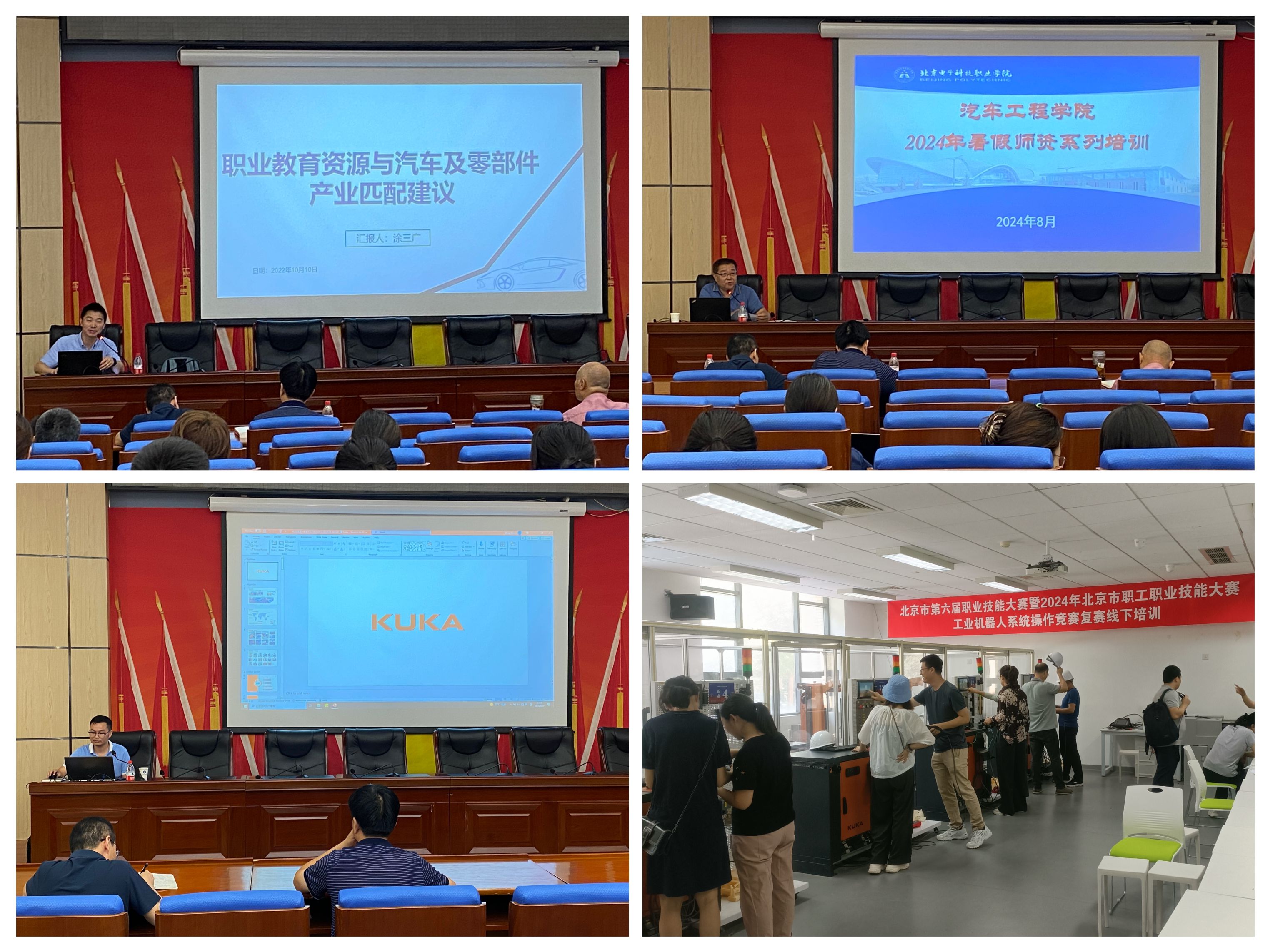 此次系列培训内容丰富、精准有效,重点包括英国现代学徒制及启示,汽车工程学院教学质量分析,库卡机器人新技术在汽车行业的应用及发展,人工智能助力教育,工业机器人系统操作员培训,以及双创大赛经验分享和班主任管理能力提升等。此次培训信息量大、内容覆盖广,针对不同专业、不同群体的教师,汽车工程学院设计了差异化的培训内容,参加培训的教师纷纷表示深受启发,收获甚多。