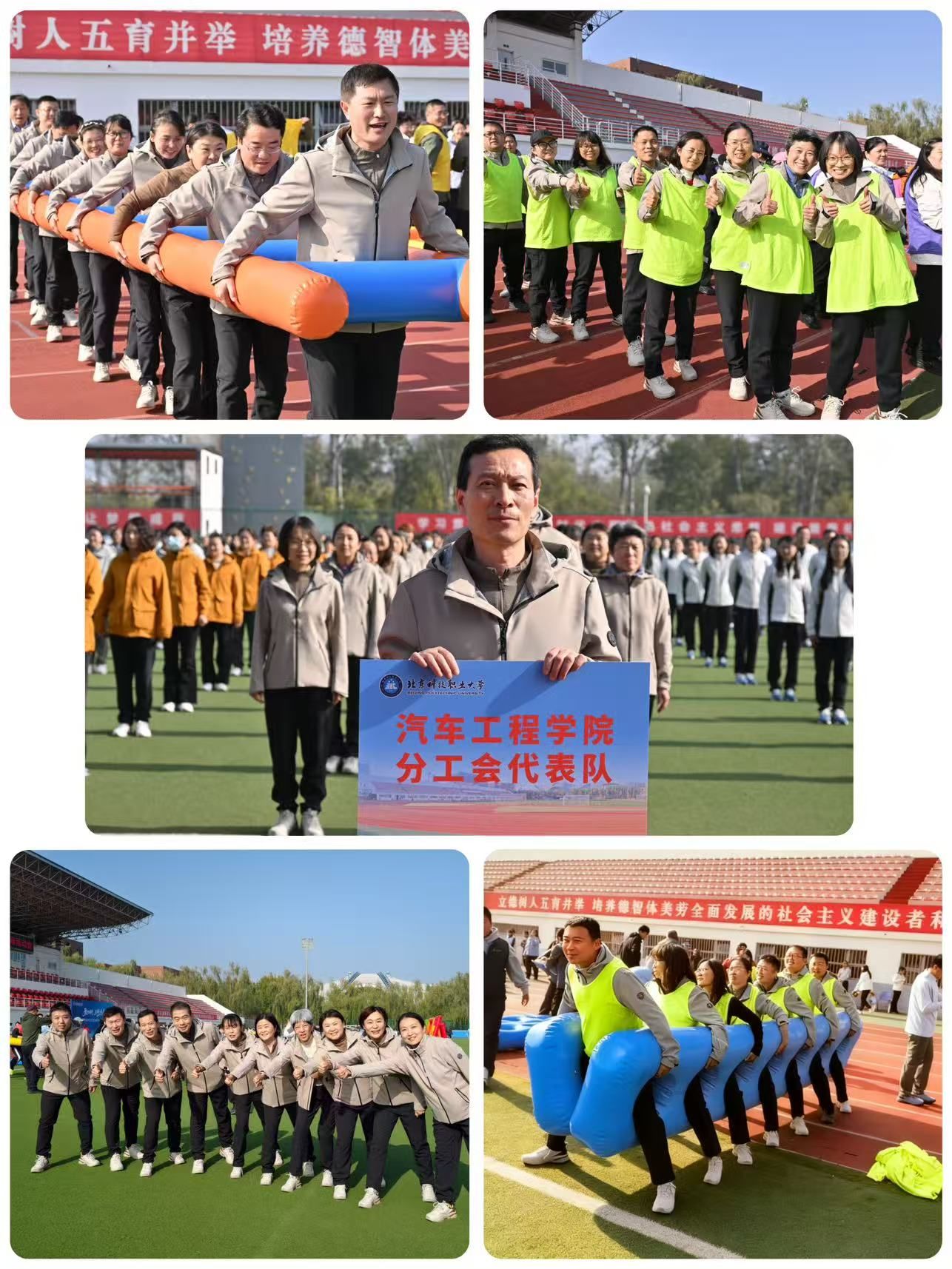 2025年10月31日,校工会秋季趣味运动会在学校体育场拉开帷幕。活动伊始,广播操比赛率先登场,汽车工程学院分工会教职工身着统一服装,以整齐划一的动作、饱满昂扬的精神状态完成整套动作,展现出学院教职工严谨有序、积极向上的良好风貌,为后续赛事奠定热烈氛围。