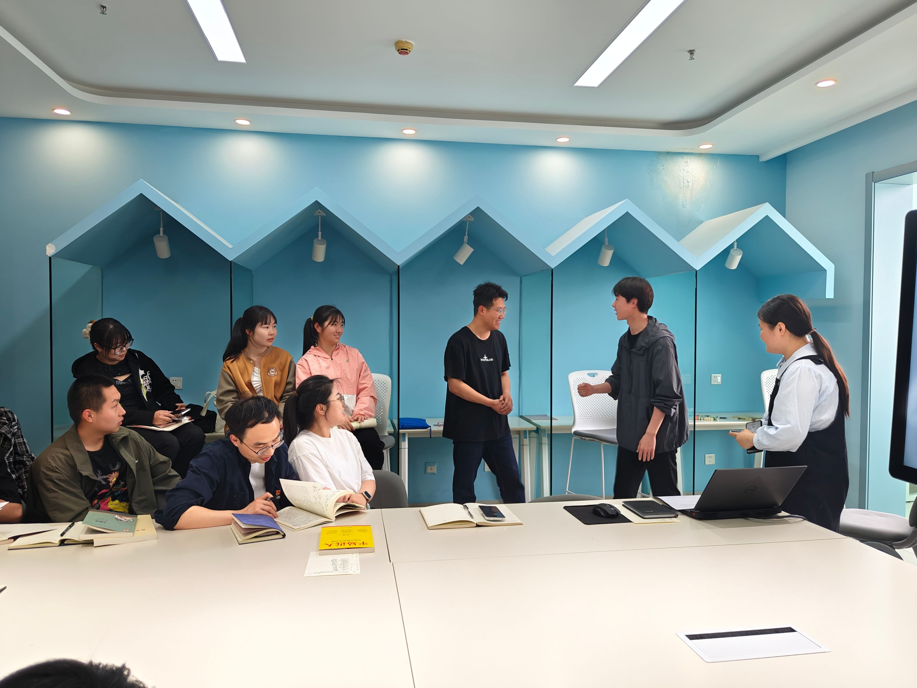 会议伊始,全体辅导员老师和学生们共同了解了《围城》的大致内容。王晨曦老师通过互动、提问等方式引导学生们去感知书中的人物,分析人物的形象特点及性格特征。