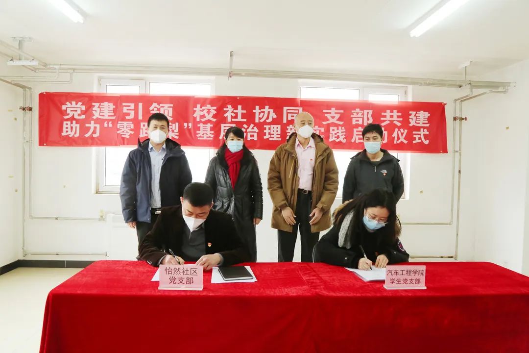 2月10日,怡然社区党支部与汽车工程学院学生党支部共同举行“党建引领 校社协同 支部共建 助力‘零距梨’基层治理新实践”启动仪式,怡然社区党支部书记陈小波与学生党支部书记王晗璐现场签署合作意向书。梨园镇党委副书记丛莉芸,副镇长张葛、汽车工程学院党总支书记李刚参加启动仪式,一同见证协议签署。