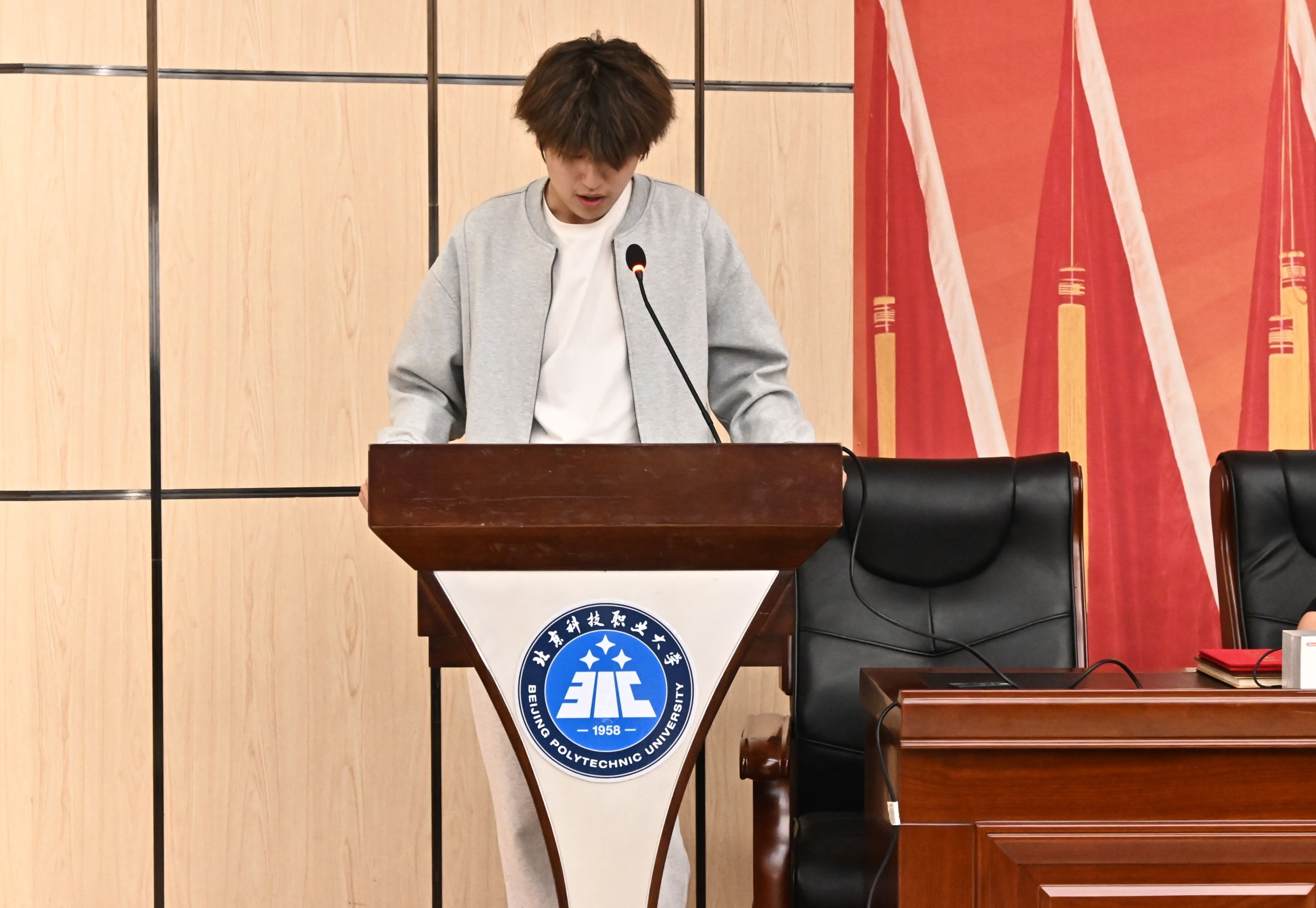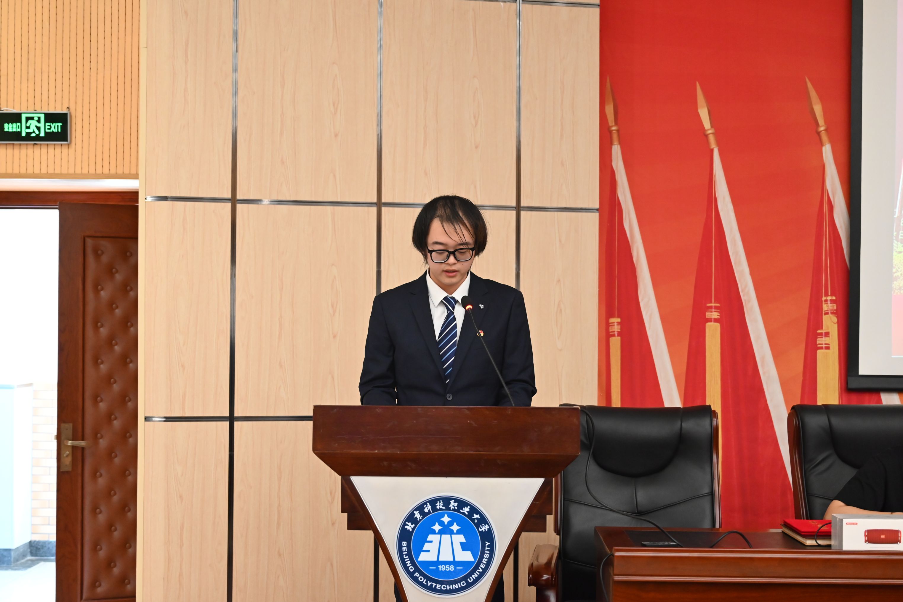 运动会方阵队员代表郭天旸同学分享了参与运动会筹备和表演的经历。入场式从策划到排练,每个细节都凝聚着团队师生的智慧与汗水。赛车领航、传承创新、技能精进,传递出“精融善新”的校训。整齐划一的步伐、热情洋溢的跳跃、响亮的口号,展现出学院风采。他表示,这段经历不仅锻炼了团队协作能力,更增强了集体荣誉感。