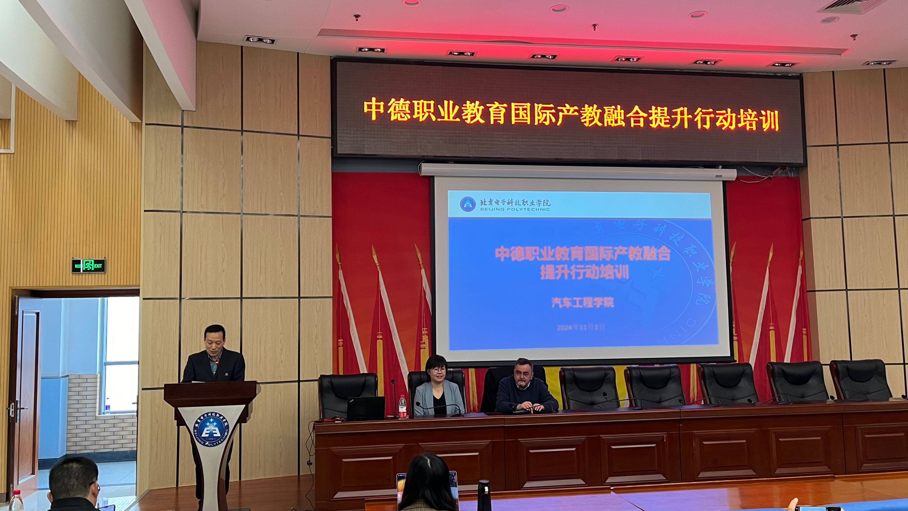 受北京市教委立项课题“中德职业教育国际产教融合提升行动”课题组委托,学校于11月1日在汽车工程学院举办基于德国“双元制”职业教育教师能力提升培训班开班仪式。汽车工程学院院长朱青松主持并作开班致辞,北京市教育科学研究院、北京电子科技职业学院国际合作与交流处相关人员参加开班仪式。